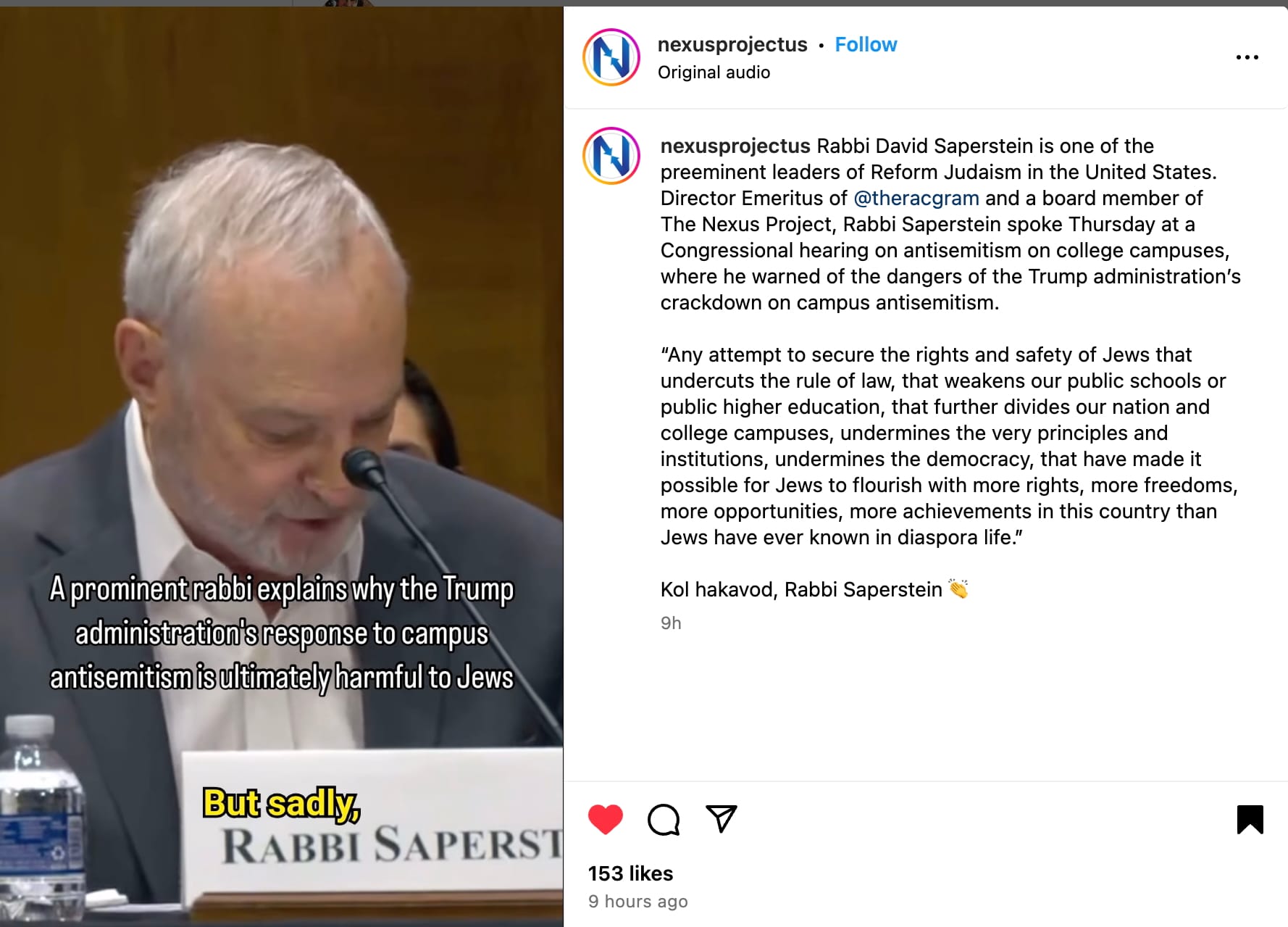 While poking fun at White may seem innocent enough, the underlying issues are deadly serious and the latest approach the administration has taken, arresting, Gestapo-style, students off the streets in the name of fighting antisemitism, just seems ... wrong. Rabbi David Saperstein, one of the pre-eminent members of Reform Judaism in the United States, addressed a congressional committee on Thursday, March 27th to point out that this approach will engender more antisemitism and is completely against Jewish values.