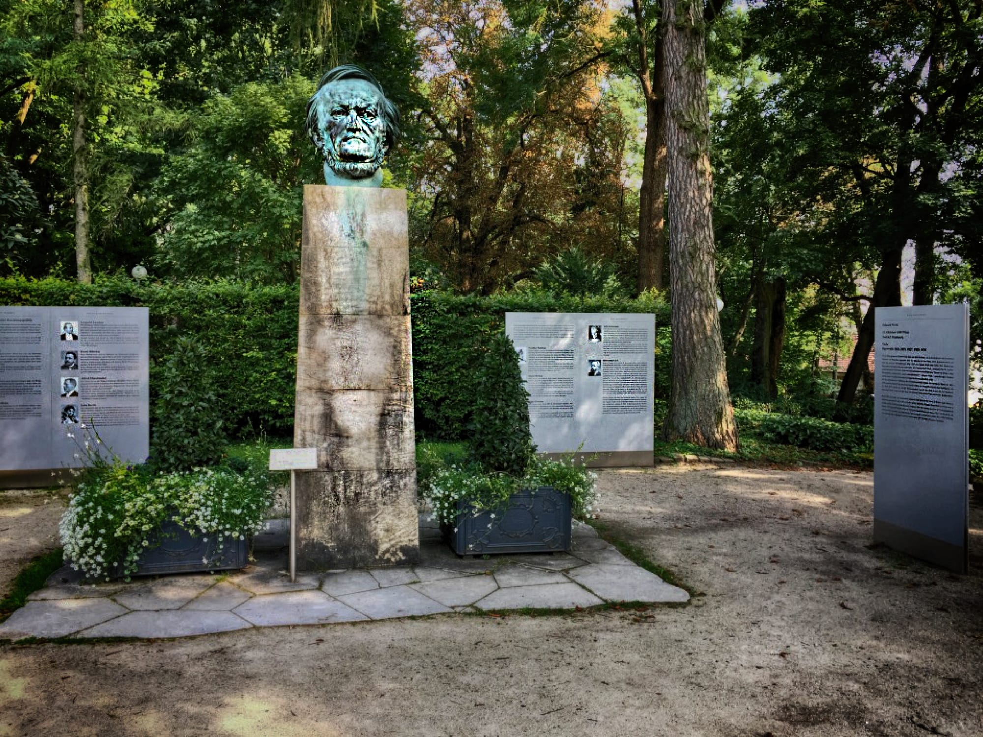 We walked past a headstone that Gothart pointed out; it belongs to Josef Rubinstein. He was a great admirer of Wagner, and wrote to him to explain that he came from a wealthy Jewish family, was a pianist, transcribed musical scores, and wanted to work for the maestro. Not one to turn down the lure of someone independently wealthy who could work for him for free, Wagner agreed. Rubinstein became his personal pianist and transcriber and, by some accounts, was treated poorly. Yet, when Rubinstein heard that Wagner had died, he killed himself. Inexplicably, because Cosima was such a rabid antisemite, she had his body brought to the Jewish cemetery.