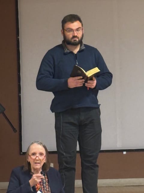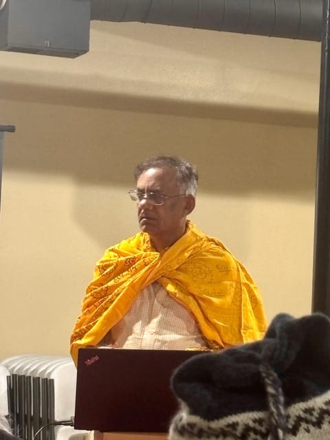 Prabhat Singh speaks on "I’m Hindu And Here Is What I Want People to Know About My Faith,” to an audience of 46 guests at the Hindu Temple Society of New Mexico, Jan. 15, 2026. photo on left © Gordon Bronitsky; audience photo © Patty Allread. / nmjewishjournal.com