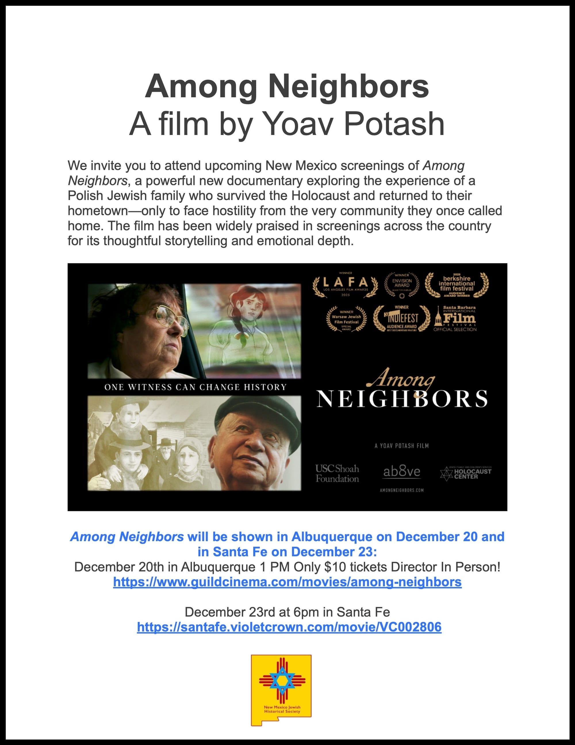 And now a word from our sponsors! Note the flyer about a special film showing, Among Neighbors. Want to become a Community Supporter Advertiser? Contact Diane at editor@nmjewishjournal.com.