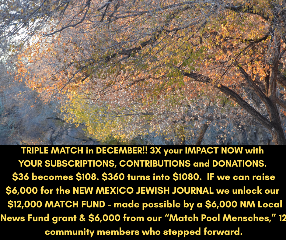 TRIPLE MATCH in DECEMBER - $36 becomes $108 NEW MEXICO JEWISH JOURNAL - HELP US RAISE $6,000 to unlock our $12,000 MATCH!