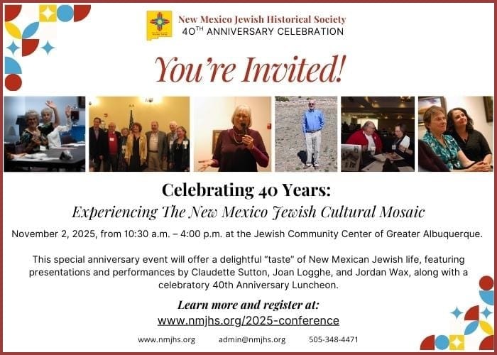 Attend the 4oth Anniversary Celebration of the NM Jewish Historical Society, November 2, 2025.