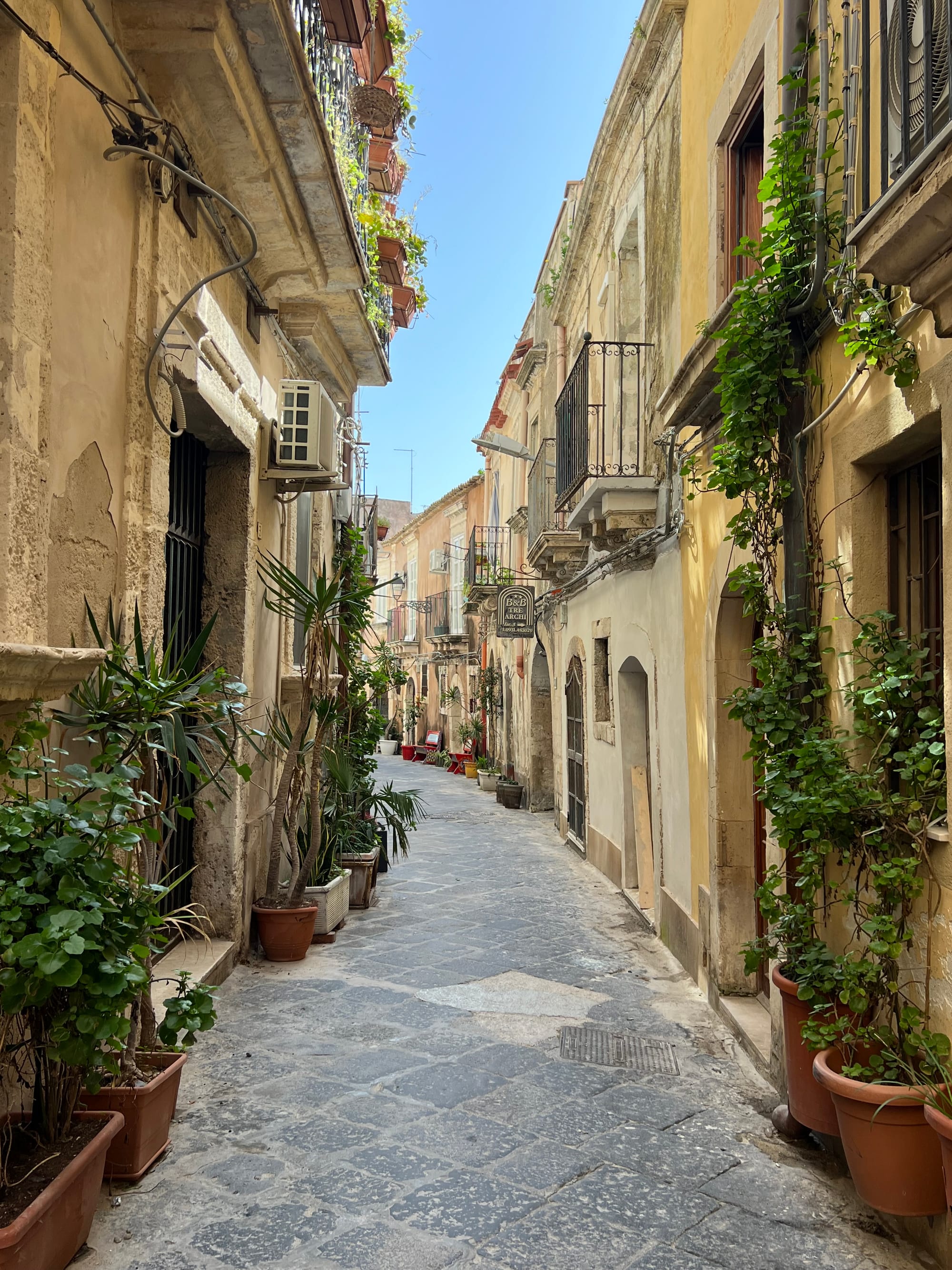 The potted plants on the narrow streets and alleyways of Ortigia and the tile rooftops above the Mikveh. Photos © by Lena S. Keslin / nmjewishjournal.com