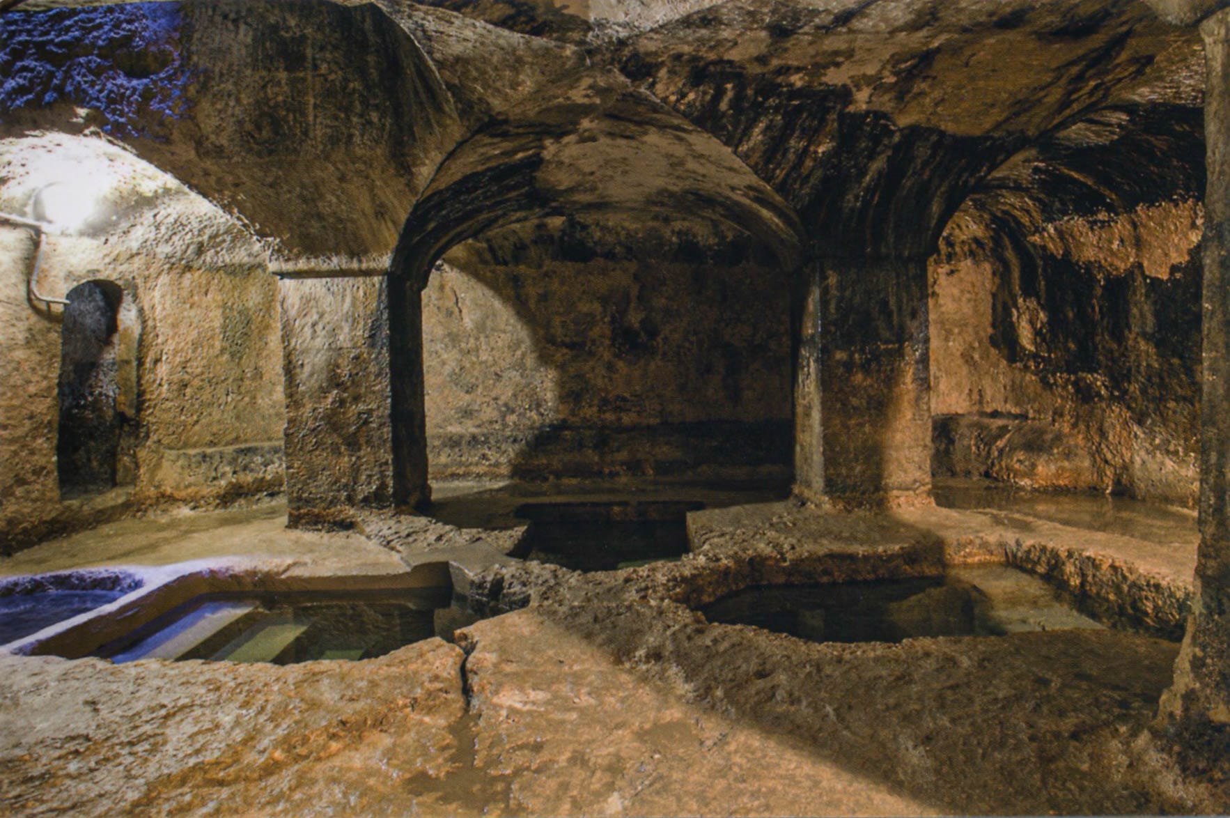 In front of her was an ancient hypogeum, a subterranean chamber with stone columns and a vaulted ceiling. Amalia had unearthed one of the oldest Jewish Baths, or “Mikveh,” in all of Europe. The Mikveh dates to the sixth century, or possibly before, and had remained hidden since the Inquisition—for nearly 500 years. The Mikveh is comprised of three separate, personal-size pools, with steps leading into the dark-green water. On both sides of the room are two additional Mikvehs, a total of five pools. The water is still delivered from the same ancient freshwater spring running beneath the city of Ortigia.