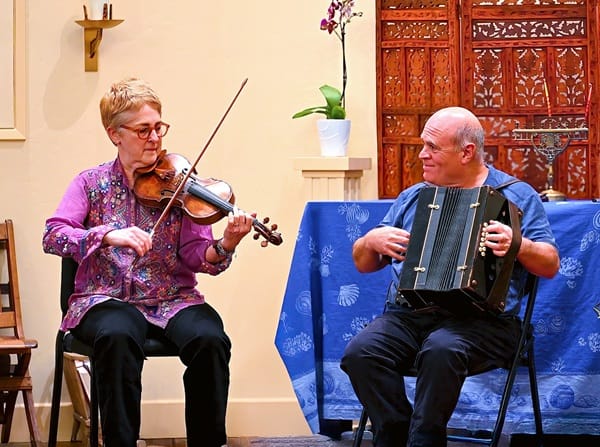 Leading the musical offerings are Cookie Segelstein and Josh Horowitz, performing as the Veretski Pass Duo. Segelstein, a master violinist and violist, is renowned for her deep knowledge of Eastern European Jewish repertoire and her work with ensembles such as Veretski Pass, Budowitz, and The Klezmer Conservatory Band. Horowitz, a virtuoso of the chromatic button accordion, cimbalom, and piano, brings decades of scholarship and performance experience, including his tenure as Director of the Yiddish Music Research Project in Graz, Austria. Together, the duo is known for historically informed yet wildly creative interpretations of traditional melodies.