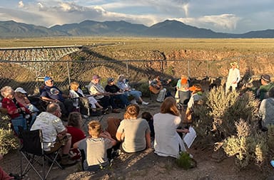 Rabbi Chava Carp, another early Jewish resident, came from Chicago to Taos in 1980. The next year, a retreat of over 100 people, (created by simply reaching out to anyone in the phone book with a Jewish sounding last name) created a thirst for something more structured. Chava’s mother was the principal of a Jewish school on the upper West Side of NYC and Chava was trained at Hebrew Union College and the Jewish Institute of Religion in order to become a Jewish Studies teacher. By default, she stepped forward in 1982 to start a school. The families soon began holding High Holiday services, seders, and women’s retreats, as well. By 1989 the need for more formal organization became clear and a non-profit organization was formed called B’nai Shalom. After serving as the spiritual leader of B’nai Shalom for several years, Chava decided to pursue ordination as a rabbi. For several years she traveled back and forth to Philadelphia to study with noted Rabbi Zalman Schacter-Shalomi, founder of the Jewish Renewal Movement, as well as other luminaries like Rabbi Tirzah Firestone and Rabbi Shlomo Carlbach.