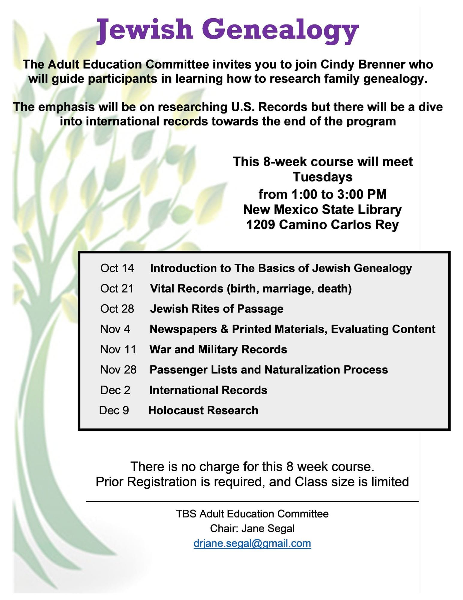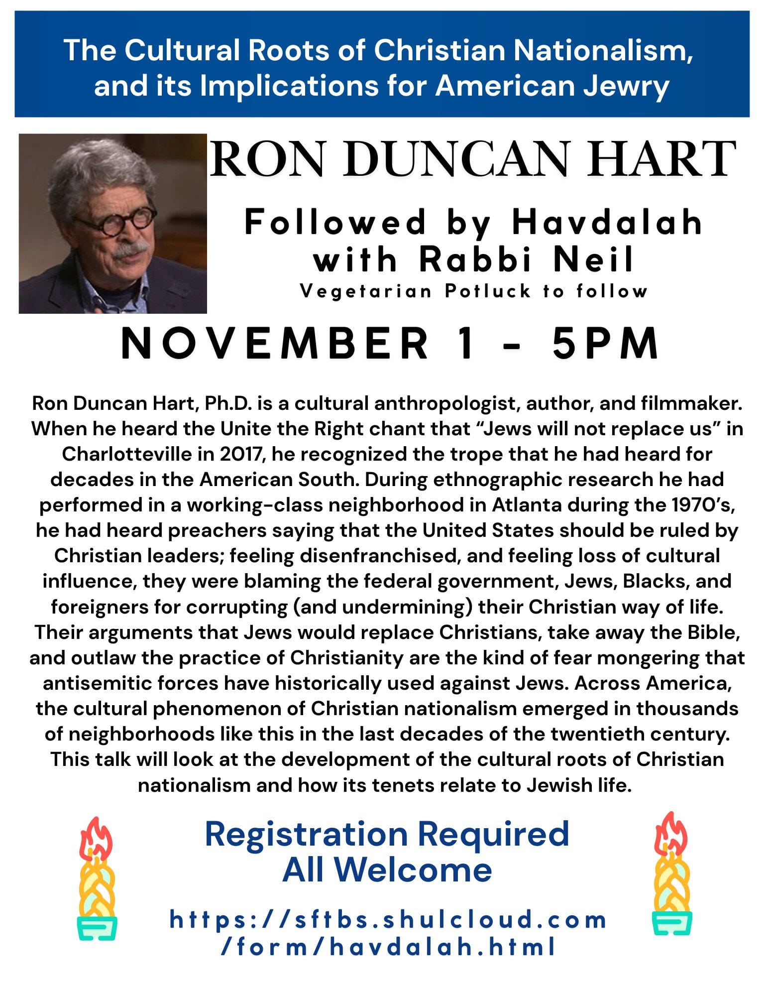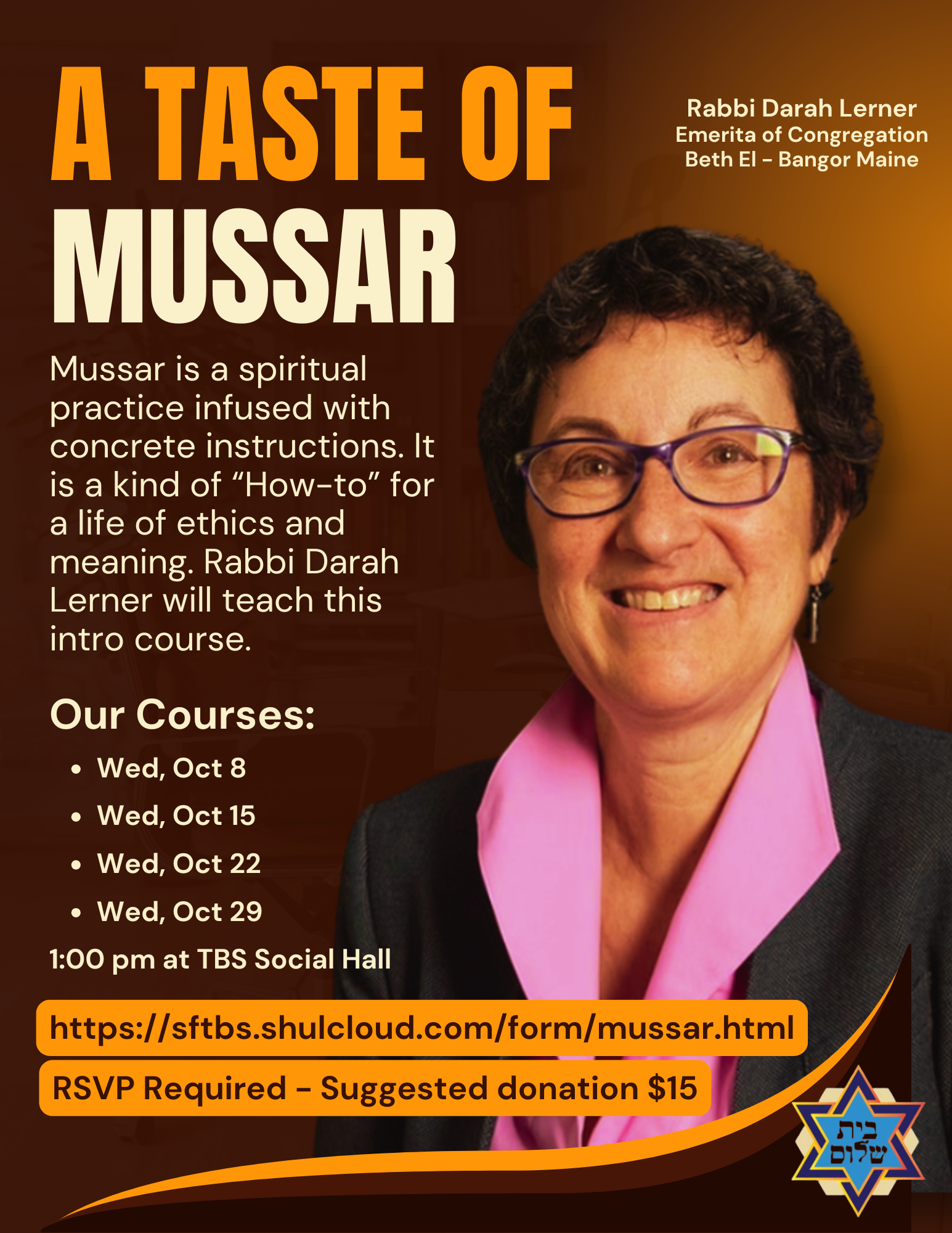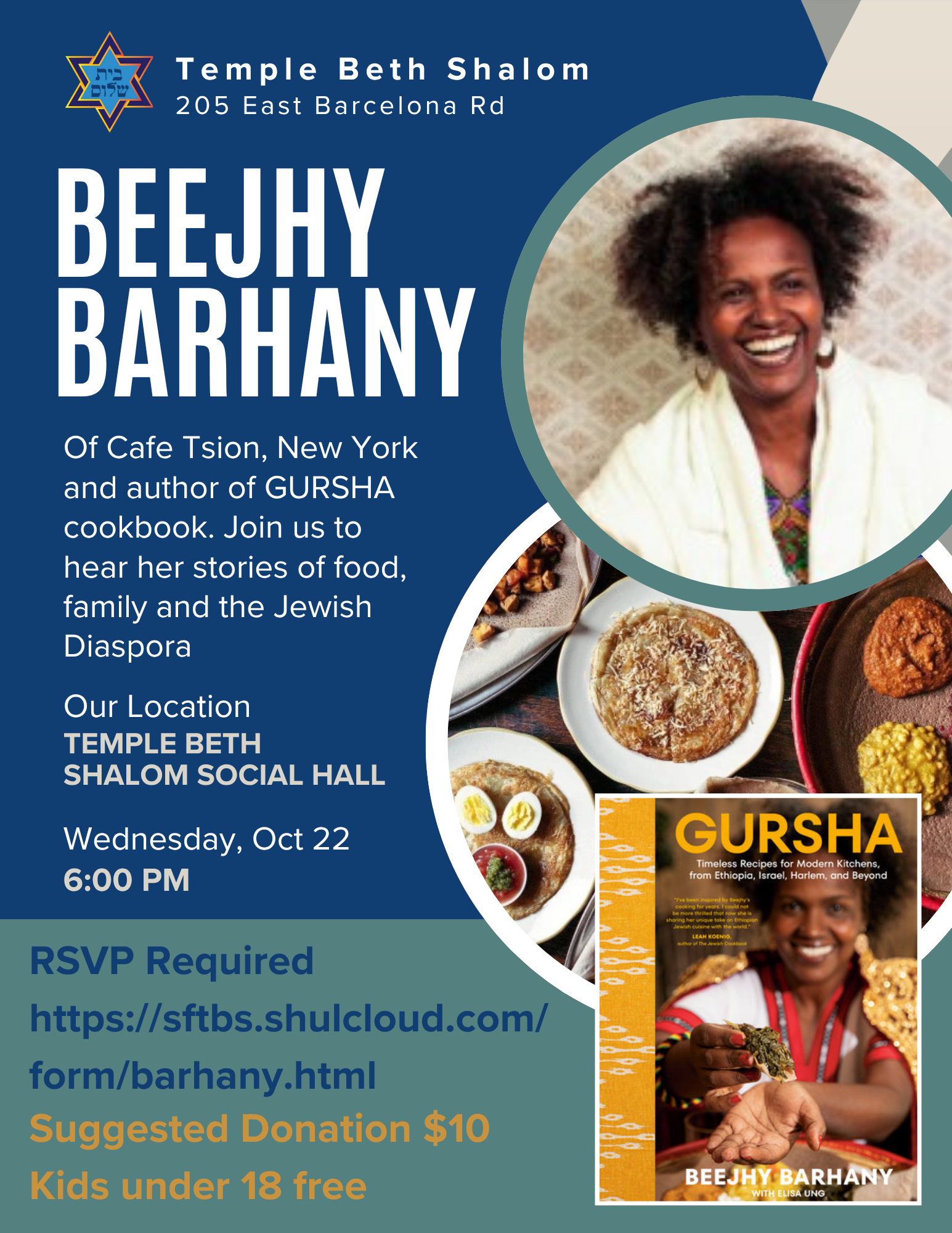 TEMPLE BETH SHALOM Special Events: Beejhy Barhany Oct. 22. Joel Chasnoff Oct. 30th. Ron Duncan Hart Nov 1st 5 pm. plus Rabbi Lerner, Mussar; Jewish Genealogy Adult Education classes.