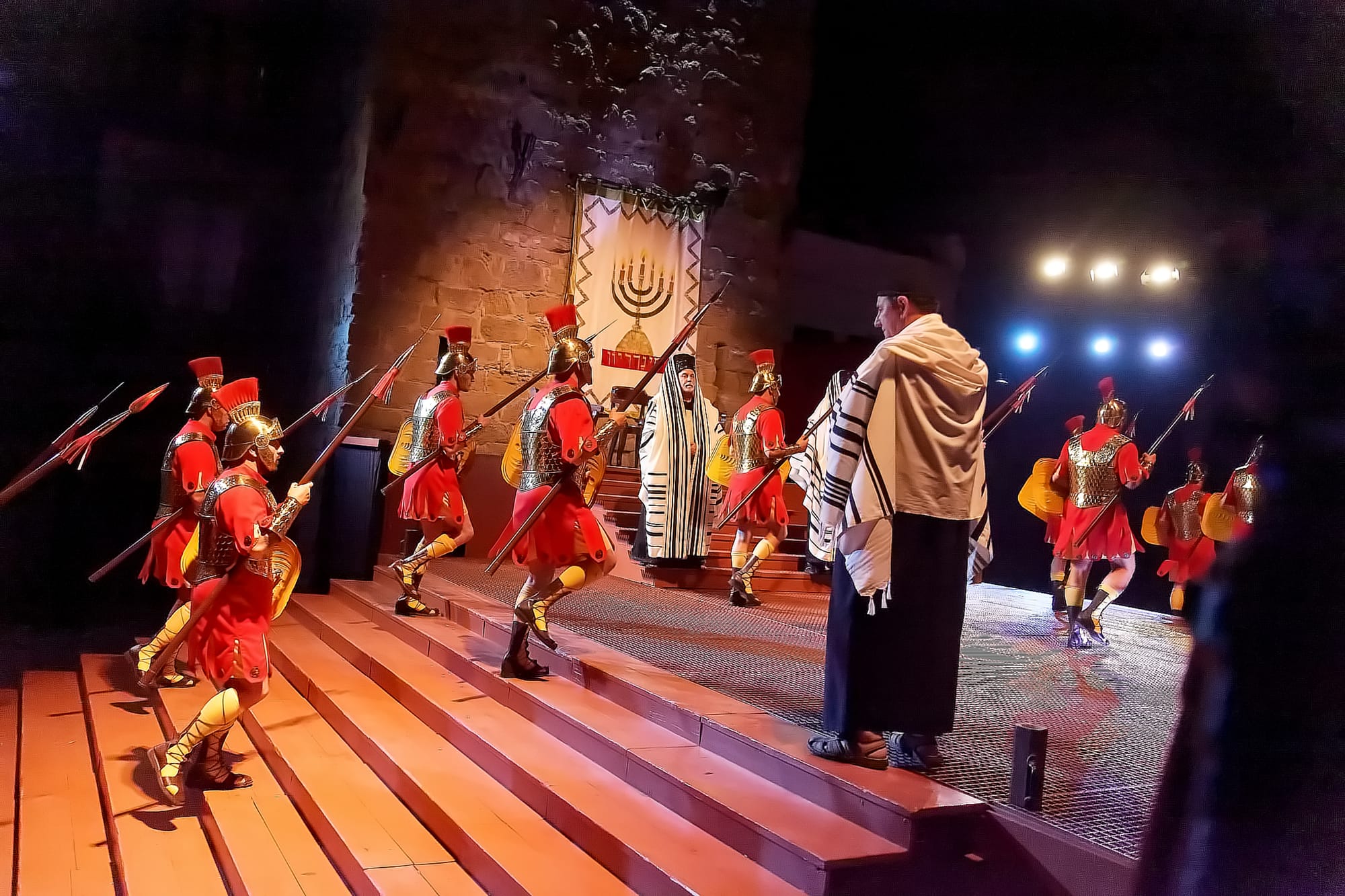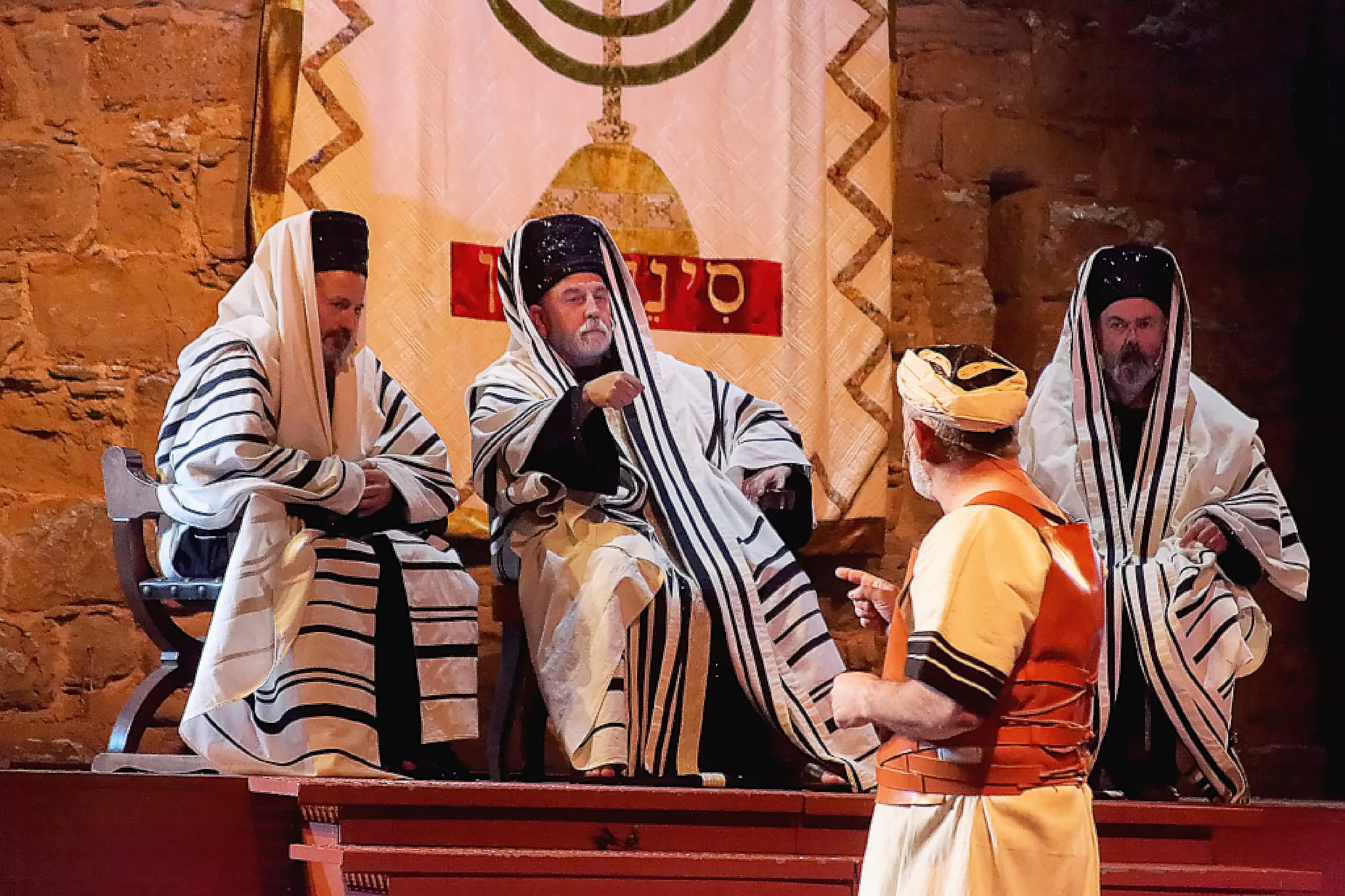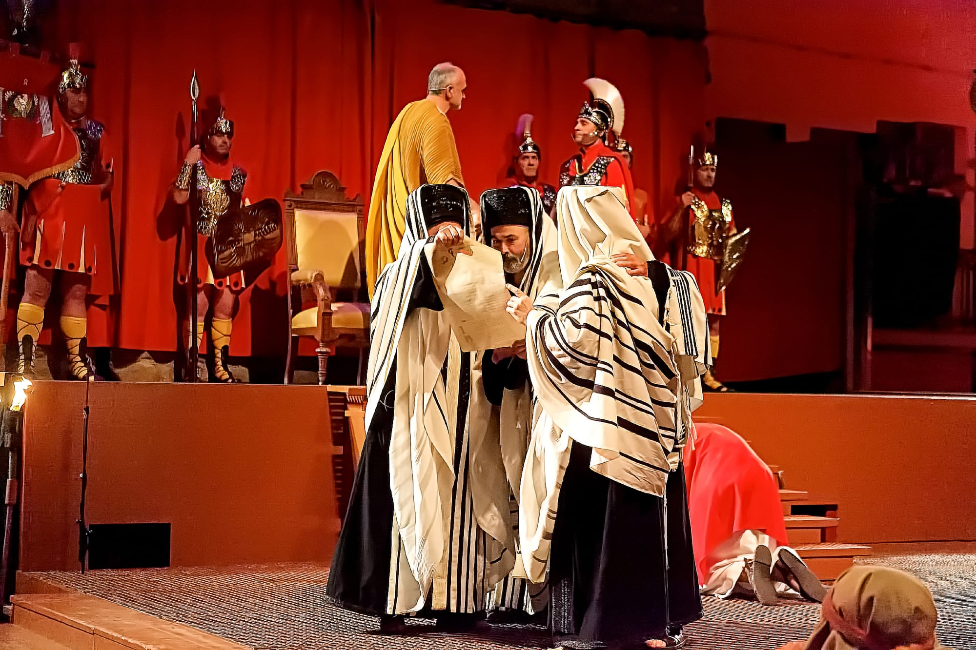 I was agog at the accuracy of the portrayal of the Sanhedrin, the Jewish legislative and judicial body at that time. The pillars behind them were inscribed with Hebrew lettering, which was carefully and correctly written. Their robes were accurately portrayed. “Wow, they really care about the depiction of the Jews,” I said aloud. The woman next to me proudly informed me that this play had been performed in Verges for 600 years and was one of the oldest performed versions of the story.