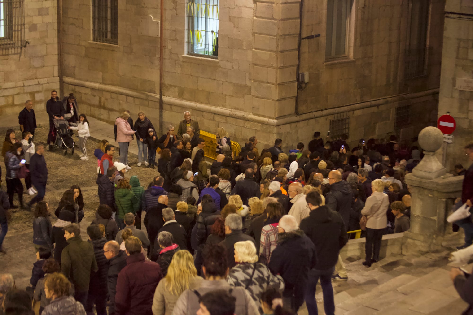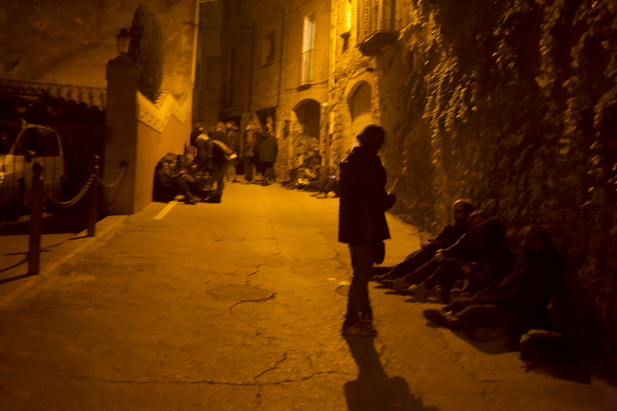 All around us, people were sitting on ancient raised stones, bundled up against the cold. Wait there for two hours? The idea of having a stone-cold butt was about as appealing as drinking the leftover brunyol oil. And wait until after midnight? Tatiana reminded us of our promise not to stay late.