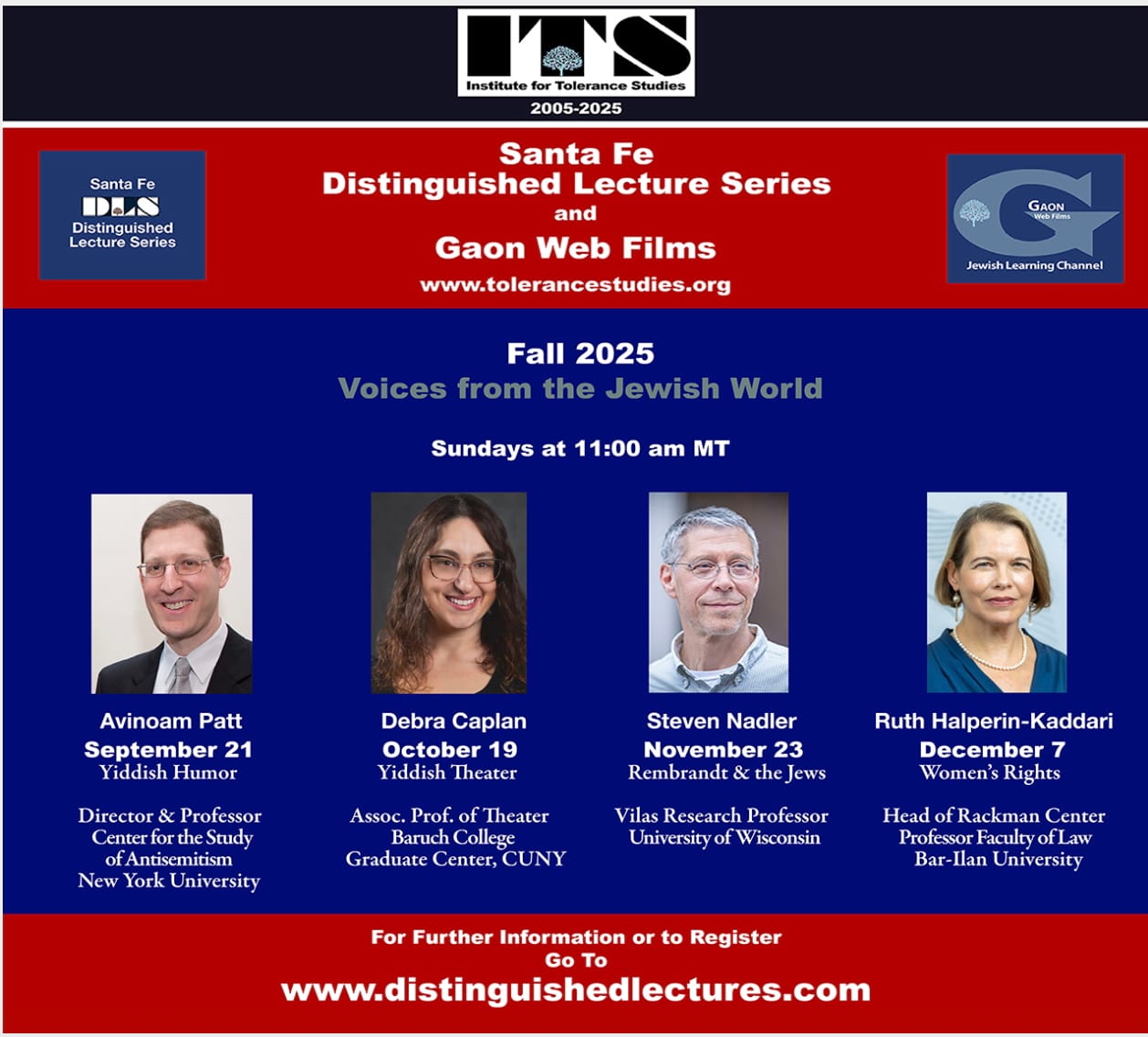 The Institute for Tolerance Studies includes the Santa Fe Distinguished Lecture Series, The Jewish Learning Channel with videos of all past lectures, and the extensive Digital Library of books and history of and about Judaism and other religions.