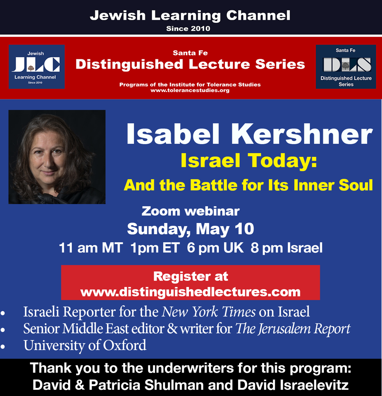 May 10: NYT Reporter Isabel Kershner, Israel Today: And Its Battle for Its Inner Soul