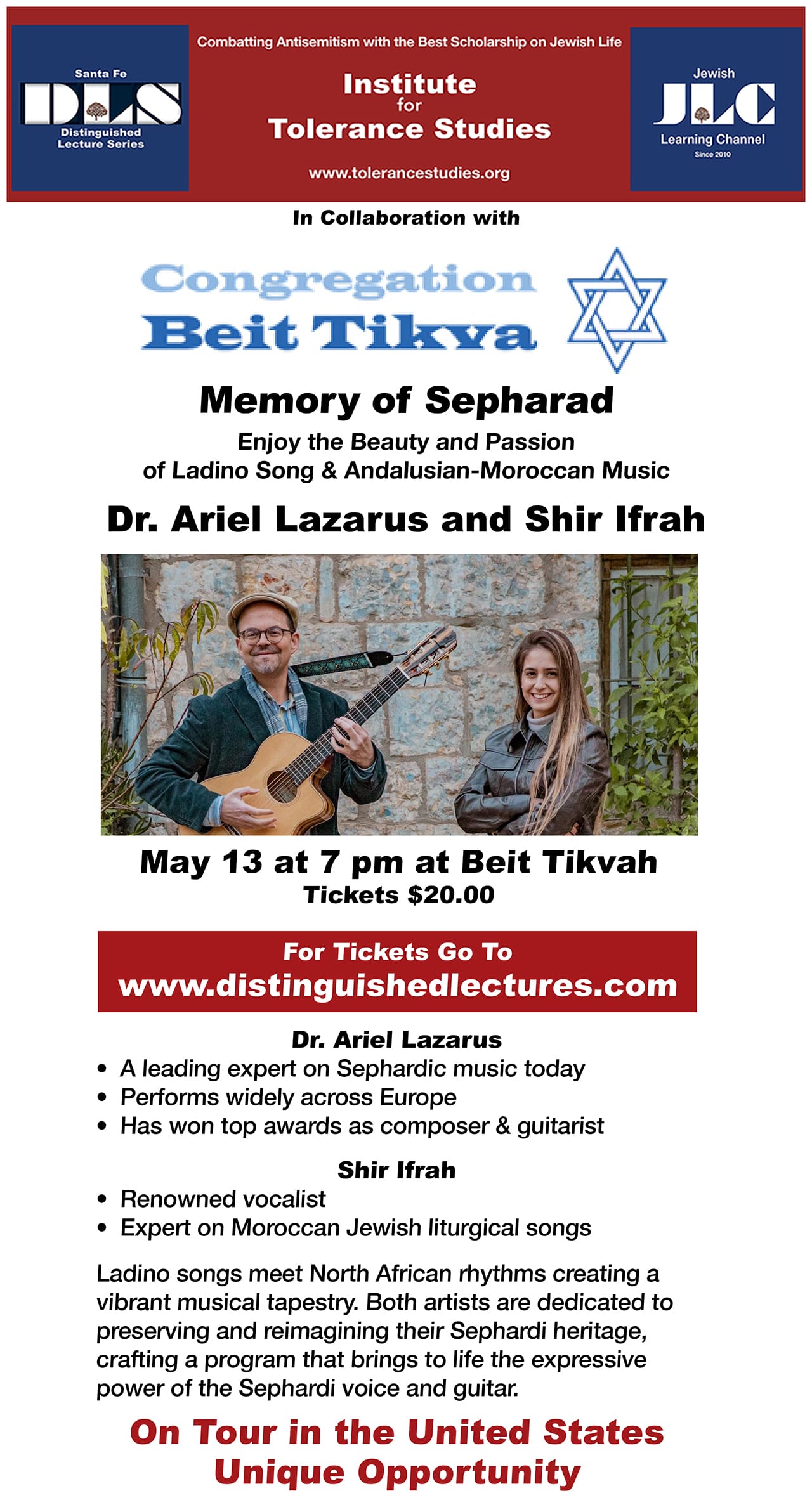 CONCERT MAY 13 Beit Tikva 7 pm - MEMORY of SEPHARAD - Get Tickets Now