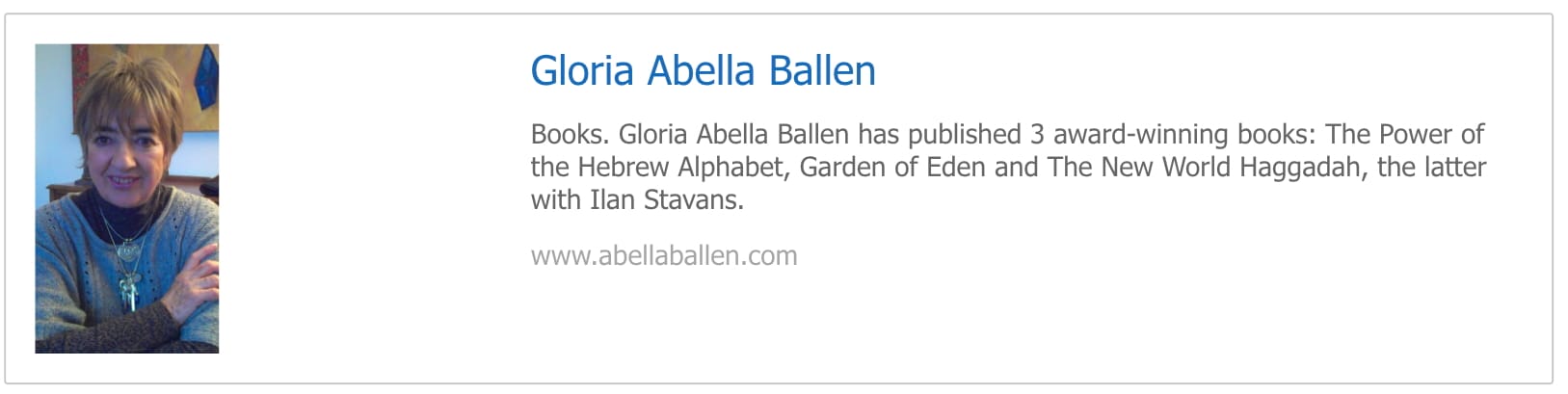Visit Gloria Abella Ballen at www.abellaballen.com